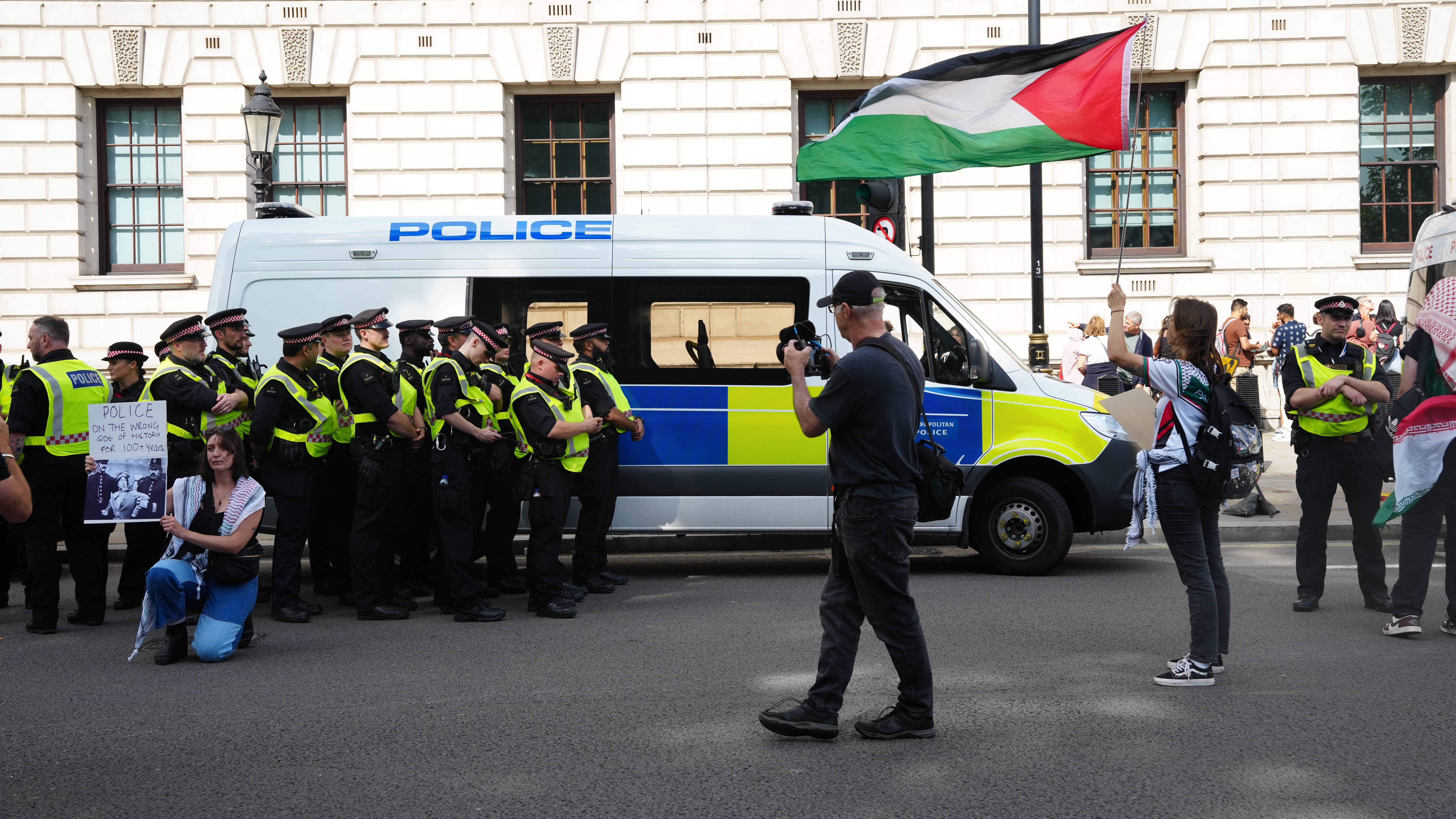 Last month witnessed violent clashes when an estimated 1,500 people gathered for a similar rally in Westminster. The protest developed an increasingly confrontational tone towards police, featuring chants including "shame on you", "you're supporting genocide", and references to former officer Wayne Couzens.