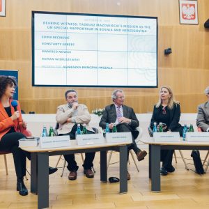 Konferencję na WNPiSM otworzyli prof. Alojzy Z. Nowak, rektor UW, i prof. Katarzyna Kołodziejczyk, dziekan Wydziału. W wydarzeniu udział wzięli m.in. prof. Robert Kupiecki, podsekretarz stanu w Ministerstwie Spraw Zagranicznych, a także eksperci: Edina Bećirević, Konstanty Gebert, Manfred Nowak i Roman Wieruszewski.
