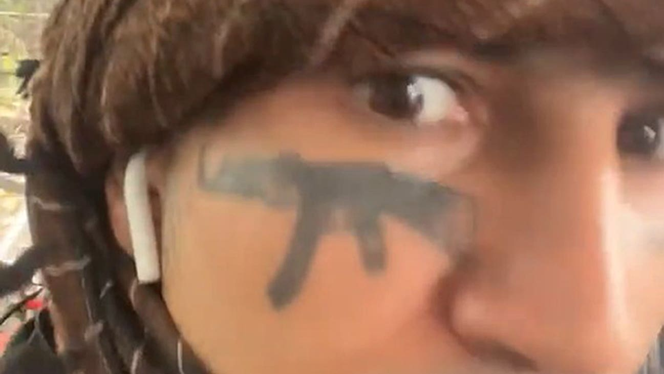 While saying "pop, pop, pop" Khan made gun gestures with his hand and headbutted the camera. He also pointed to an AK-47 tattoo on his face to emphasise the seriousness of his threat.