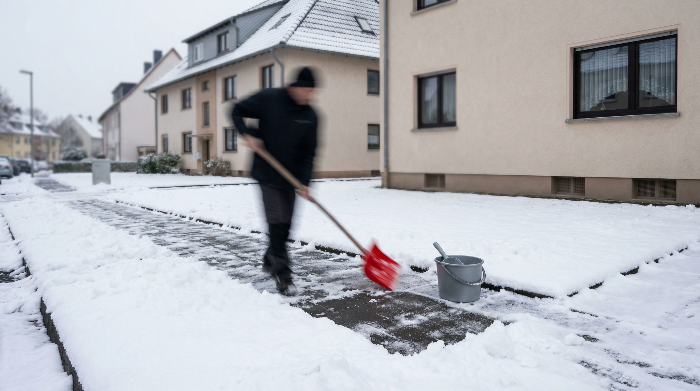 Beim Streuen sind die meisten Gemeinden wählerisch: Erlaubt sind Sand, Asche, Granulat oder Splitt. Streusalz ist aus Umweltschutzgründen meist verboten – Ausnahmen gelten manchmal für Treppen oder steile Wege. Chemische Auftaumittel sind in vielen Städten der Stadtreinigung vorbehalten und für Privatpersonen tabu.