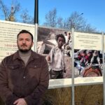 15.12.2025. Kielce. Ogród Wolności. Wystawa „Cisza, która krzyczy”. Na zdjęciu: Maciej Jakubczyk / Fot. Marcin Marszałek – Radio Kielce„Cisza, która krzyczy” to wystawa złożona z dziesięciu plansz, na których można zobaczyć zdjęcia obrazujące dramat ludności palestyńskiej oraz informacje na temat skali ofiar i strat materialnych. Radny dodaje, iż całą wystawę sfinansował z własnych środków w kwocie ponad 10 tys. zł.