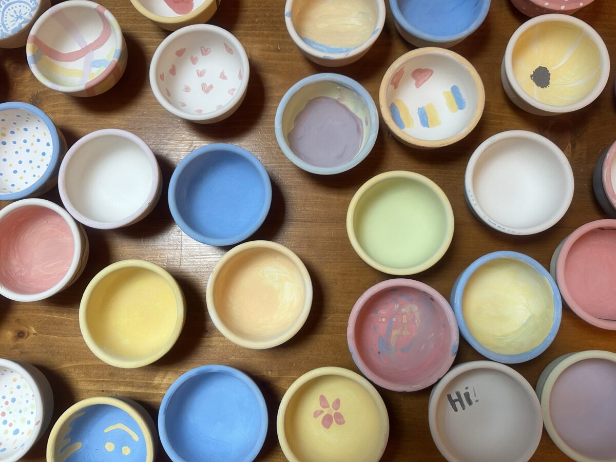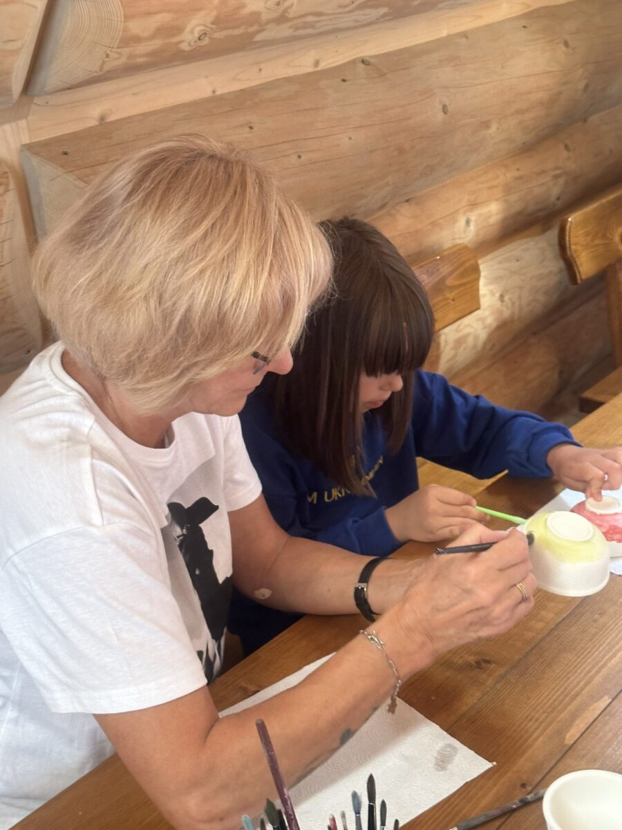 Środowy poranek maluje się kolorami dziecięcej twórczości. Małe rączki z zapałem zdobią miseczki, dominują barwy ukraińskiej flagi, kwiaty i uśmiechy. Dzieci, skupione i zaangażowane, z wielką starannością dbają o każdy szczegół.
