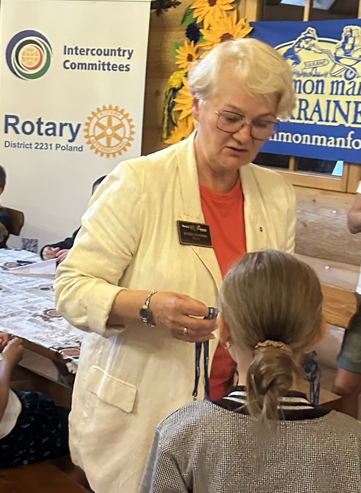 W czwartek spędziliśmy wspólny wieczór z dziećmi i gubernator Krystyną Baj-Pawluk. Gubernator Krystyna zapowiedziana przez Ryszarda Łuczyna i Jurija Basaraba przywitała się z każdym z dzieckiem wręczając drobny upominek, opowiedziała o Rotary i o tym, iż bardzo chciała się z nimi spotkać. Dzieci chętnie nawiązywały kontakt, podchodziły, uśmiechały się, widać było, iż pragną rozmowy, zauważenia.