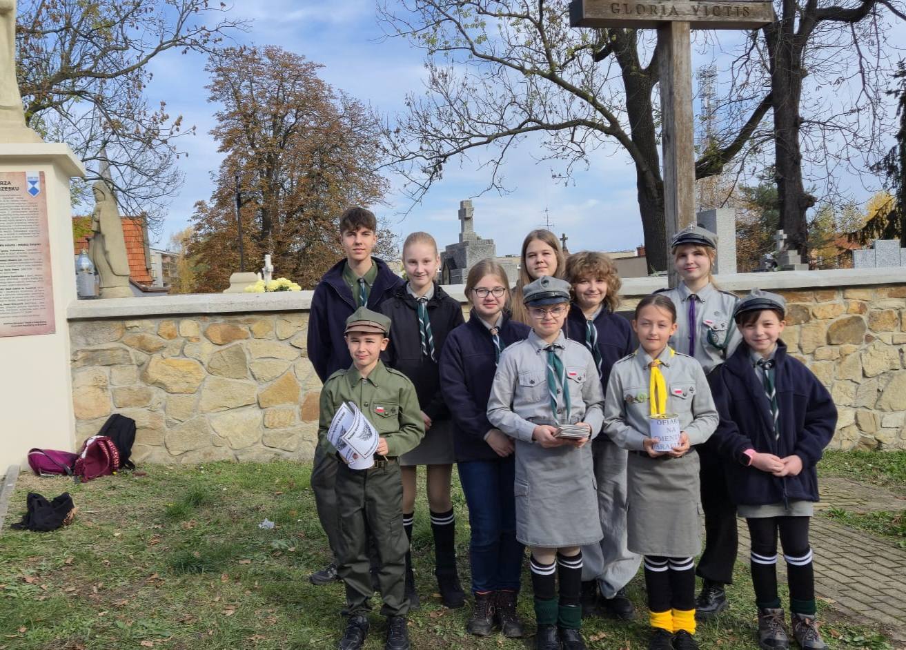 Na początku listopada, pod czujnym okiem druhny Kingi Bogusz, młodzi harcerze nie tylko zadbali o porządek na cmentarzu, ale również kwestowali na rzecz renowacji zabytkowych nagrobków na Starym Cmentarzu.