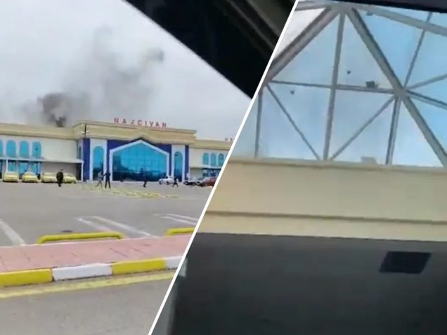 Informację o zdarzeniu podała agencja Reuters, powołując się na źródła zbliżone do władz w Baku. Według tych doniesień pociski spadły na teren lotniska w Nachiczewańskiej Republice Autonomicznej, eksklawie Azerbejdżanu oddzielonej od reszty kraju terytorium Armenii. Port lotniczy znajduje się zaledwie około 10 kilometrów od granicy z Iranem.