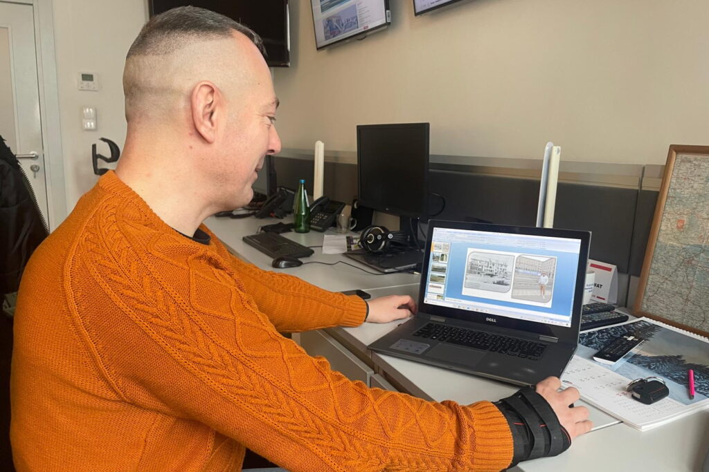 Na zdjęciu Łukasz Wróbel. / Źródło: Dionizy Krawczyński- Radio Kielce-Popatrz mam rozpisane wszystkich agentów, bo to nie tylko były kobiety. Tu jest jedna z najważniejszych agentek Irene von Jena, córka niemieckiego generała – mówi mój gość, pokazując na komputerze kolejne plansze.