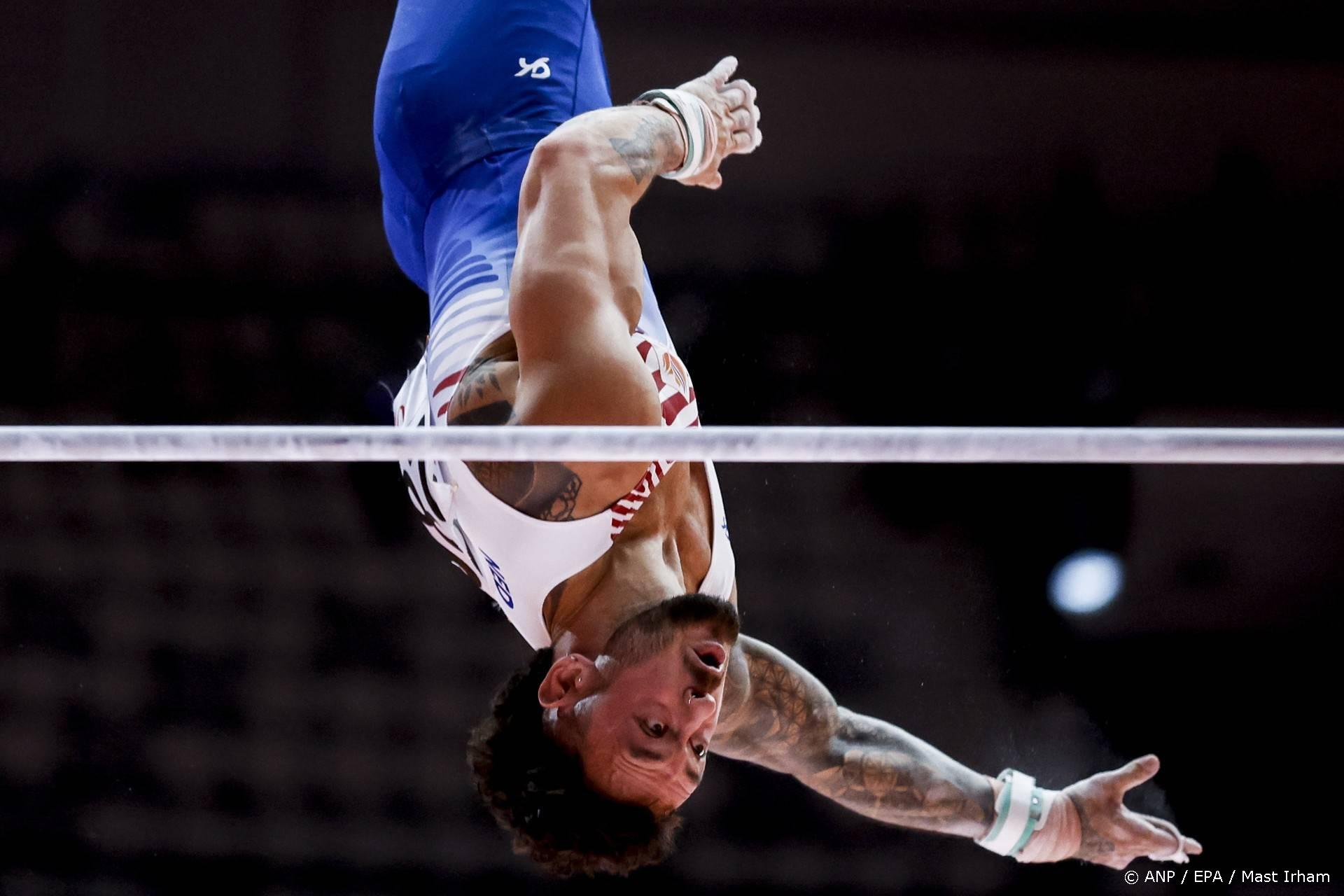 WK-debutant Elijah Faverus staat met 13,966 punten voorlopig tiende op voltige. Voor een toestelfinale is een plek bij de beste acht vereist, terwijl de top-24 kwalificatie geeft voor de meerkampfinale.