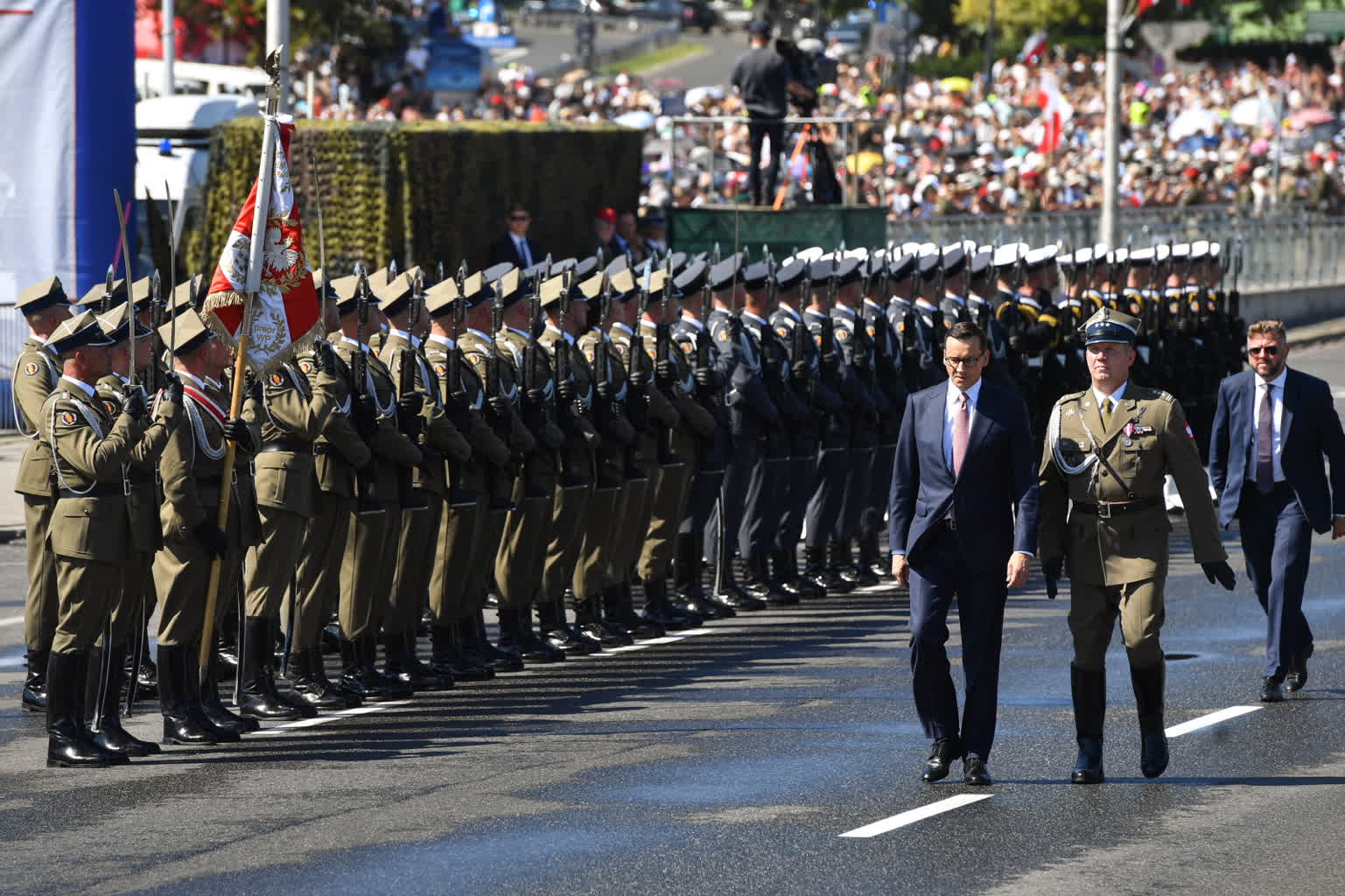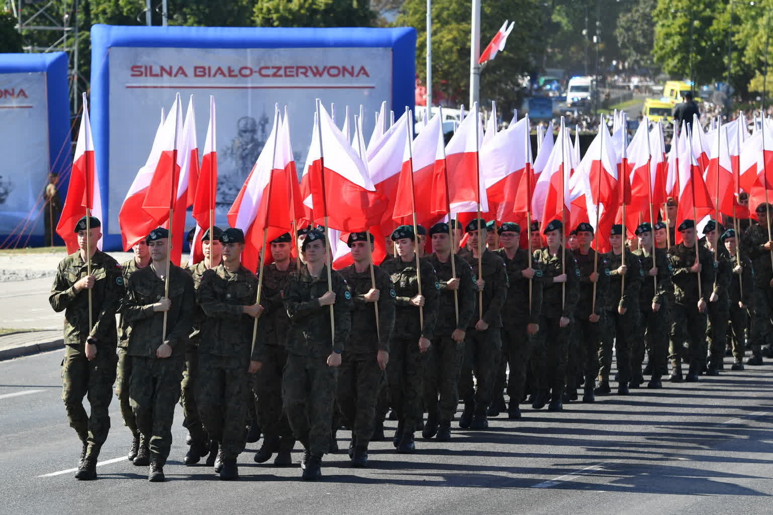 We wtorek po południu warszawską Wisłostradą przeszła defilada wojskowa pod hasłem „Silna Biało-Czerwona”. Wzięło w niej udział ok. 2000 żołnierzy, obserwowanych przez najważniejszych polityków i tysiące widzów.