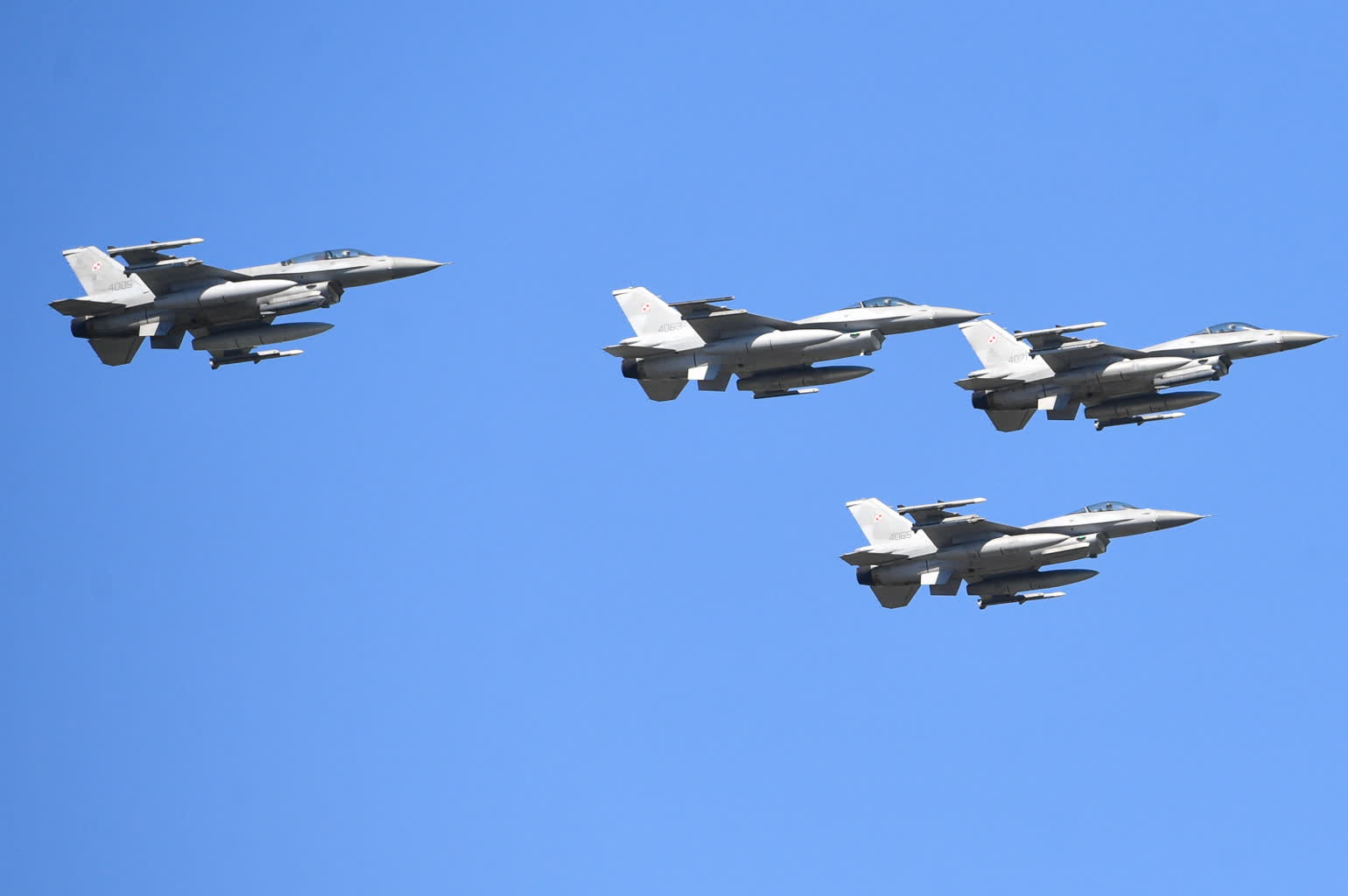 Następnie na niebie pojawiły się samoloty bojowe – służące już od blisko 40 lat samoloty myśliwsko-bombowe Su-22, a za nimi myśliwce MiG-29. Za konstrukcjami z czasów radzieckich zobaczyć można było lekkie samoloty FA-50 z Korei Płd., które mają zastąpić MiGi. Za nimi przeleciały myśliwce wielozadaniowe F-16 – w tej chwili podstawowe samoloty bojowe w polskim lotnictwie. W defiladzie wzięły też udział gościnnie myśliwce Eurofighter Typhoon należące do sił włoskich – biorą one udział w misjach NATO w regionie Morza Bałtyckiego. Na koniec defilady zobaczyć można było także dwa amerykańskie myśliwce F-35. Polska zamówiła 32 takie maszyny, ale pierwsze z nich mają zostać dostarczone w 2024 roku.