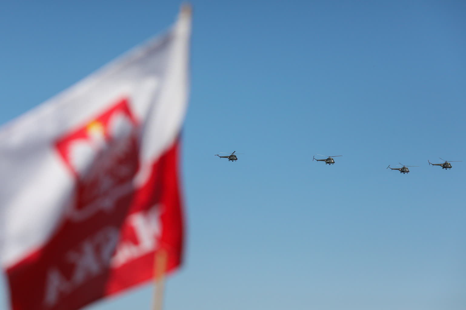 Drugą część defilady stanowiły pokazy lotnictwa. Pierwsze na niebie pojawiły się śmigłowce – zarówno te będące już od dawna na wyposażeniu polskiego wojska, jak śmigłowce W-3 Sokół czy Mi-2, Mi-8 i Mi-17. Widoczne były także śmigłowce Black Hawk oraz nowe nabytki polskiego wojska – śmigłowiec AW101 przeznaczony do wykorzystania przez Marynarkę wojenną oraz śmigłowiec AW149 – tego typu maszyny mają wejść na wyposażenie Wojsk Lądowych.