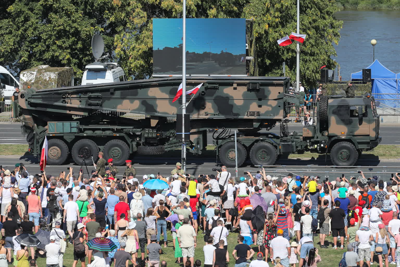 Na trasie przemarszu defilady – wzdłuż Wisłostrady i na skwerze 1 Dywizji Pancernej WP u podnóża Nowego Miasta zgromadziły się mimo 35-stopniowego upału tysiące widzów. Na specjalnej trybunie zasiedli najważniejsi politycy w państwie – prezydent Andrzej Duda, premier Mateusz Morawiecki, marszałek Sejmu Elżbieta Witek, a także ministrowie, w tym szef MON Mariusz Błaszczak, szef MSZ Zbigniew Rau, szef MSWiA Mariusz Kamiński, szef MKiDN Piotr Gliński i szef MAP Jacek Sasin.