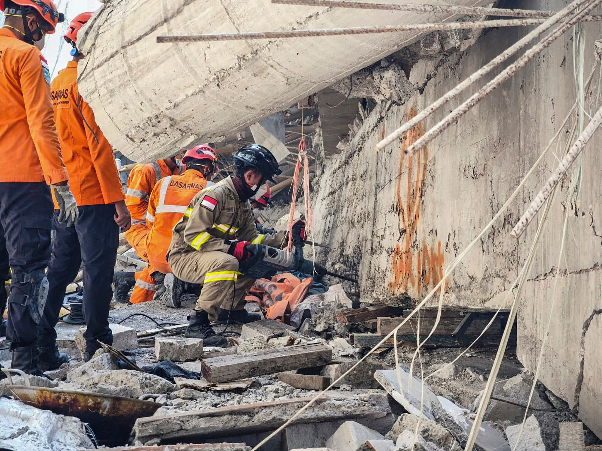Ratownicy wykopali tunele w ruinach budynku i wywołują imiona chłopców oraz używają czujników do wykrywania wszelkich ruchów. Akcję ratunkową utrudniają zwały gruzu, które komplikują dostęp do uwięzionych osób.