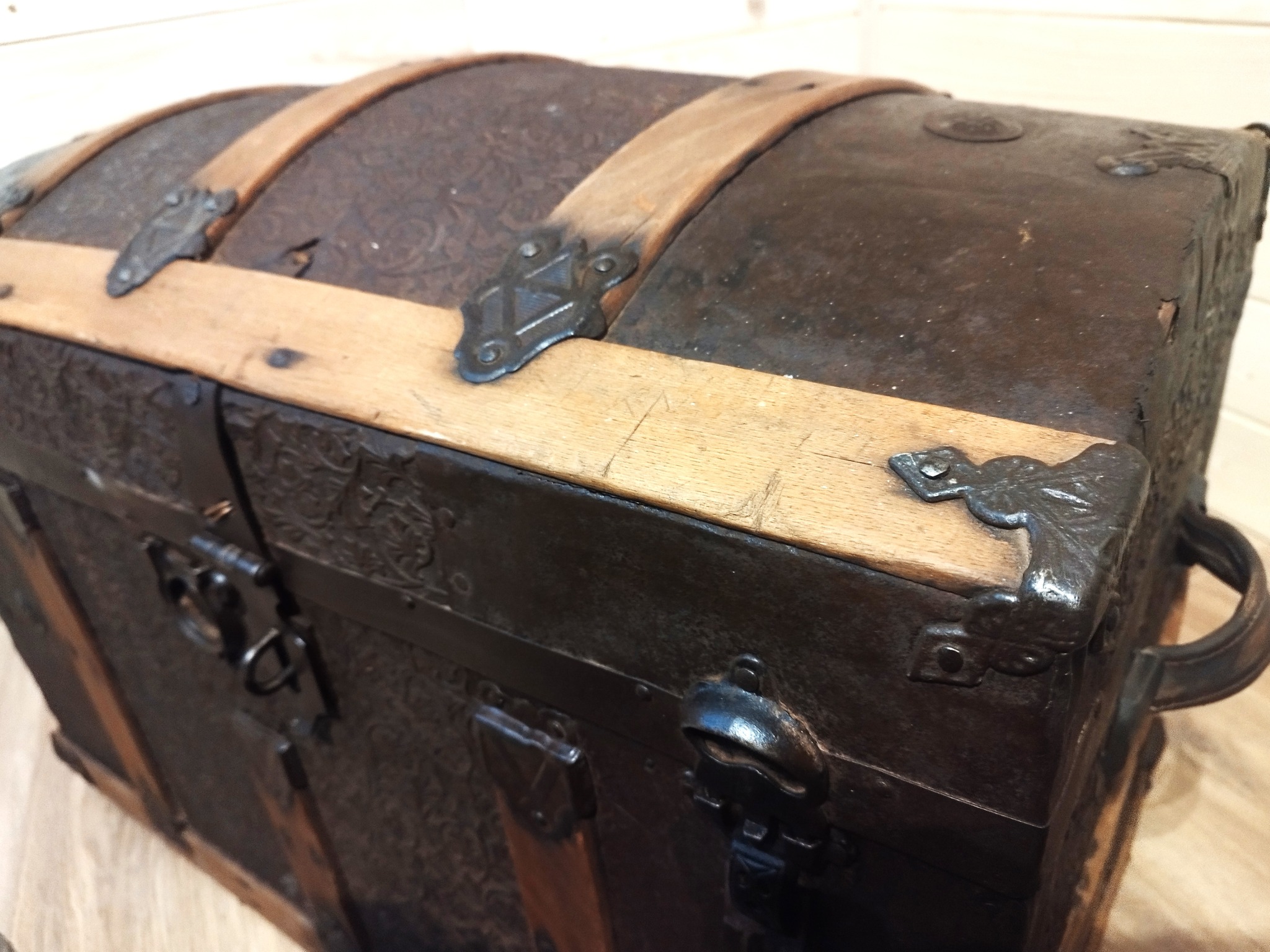 W tym właśnie czasie, zamiast barwnie malowanych skrzyń, mieszkańcy wsi zaczynają masowo kupować dla swoich córek kufry, przeważnie jednokolorowe brązowe lub ciemnozielone, ozdobione okuciami z cienkiej blachy malowanej na czarno i wycinanej wzdłuż brzegów w różne nieskomplikowane wzory. Rozmieszczenie okuć na kufrach ogranicza się do kilkunastu powtarzających się schematów. o ile okucia wykonane są z grubszej blachy, pojawiają się na nich dekoracje wybijane stempelkiem. O ile produkcja skrzyń malowanych, poza nielicznymi wyjątkami, zamarła już w czasach międzywojennych, o tyle wyrób kufrów, szczególnie w województwach wschodnich, cieszył się żywotnością jeszcze w latach 60. XX wieku.
