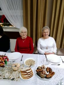 Po przeczytaniu Ewangelii przez księdza wszyscy podzielili się poświęconym opłatkiem składając nawzajem sobie życzenia. Po życzeniach wszyscy zasiedli do kolacji Wigilijnej. Tradycyjne potrawy zostały przygotowane przez nasze panie i panów z KGW.