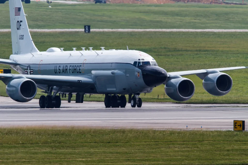 Equipped with antennas, direction-finding arrays, processing racks, and operator consoles, the RC-135s fuse COMINT (communication intelligence) and ELINT (electronic intelligence).