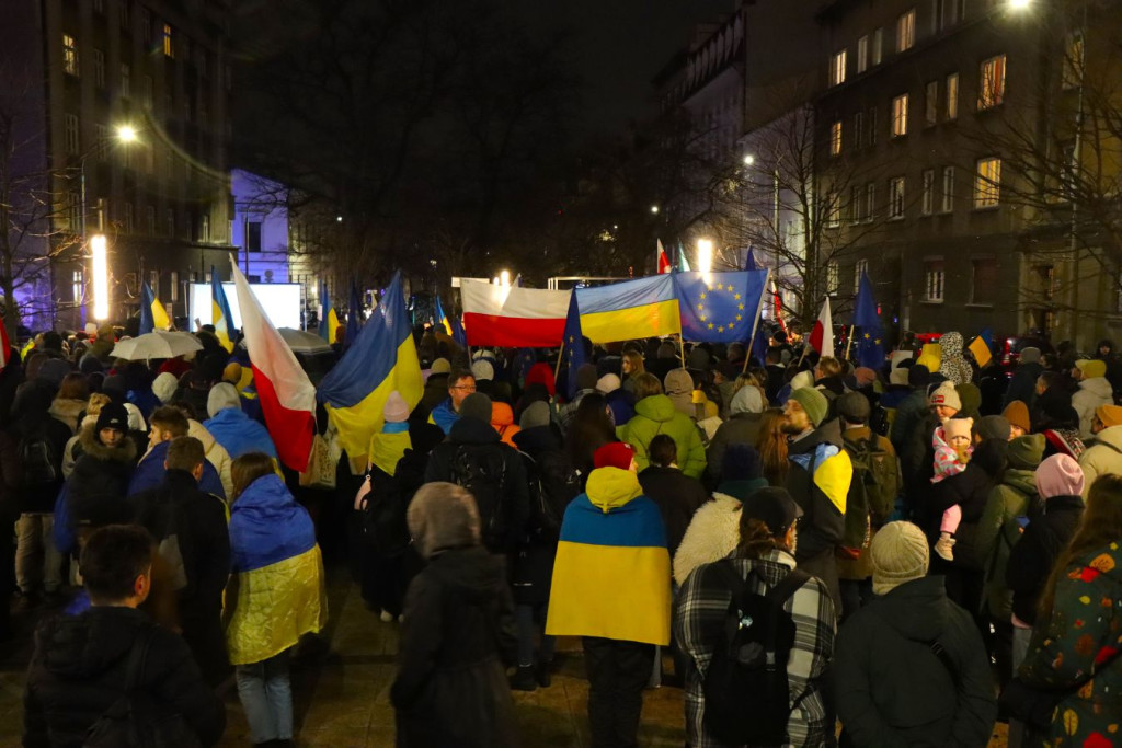 We wtorek, 24 lutego, o godz. 18 na Skwerze Wolnej Ukrainy w Krakowie odbył się wiec solidarności z Ukrainą. Mieszkańcy miasta zgromadzili się, by wyrazić wsparcie i upamiętnić ofiary wojny.