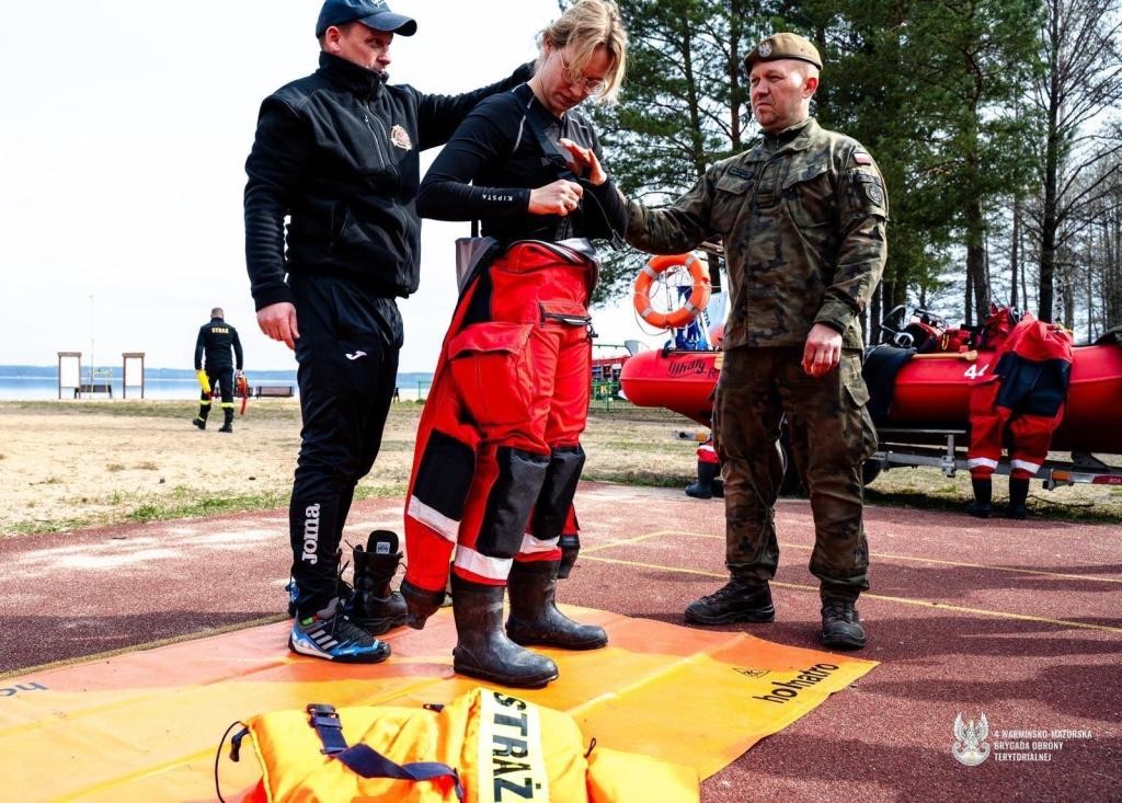 Istotnym komponentem ćwiczeń było też współdziałanie z grupami ratownictwa wodnego. W jego ramach giżyccy terytorialsi doskonalili umiejętności udzielania pomocy osobom tonącym, ćwicząc zarówno techniki podejmowania poszkodowanych z wody, jak i udzielania pierwszej pomocy przedmedycznej.