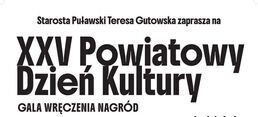 Starosta Puławski p. Teresa Gutowska zaprasza na XXV Powiatowego Dnia Kultury, który odbędzie się w poniedziałek, 1 grudnia 2025 r. o godz. 17:00 w Puławskim Ośrodku Kultury „Dom Chemika” przy ul. Wojska Polskiego 4 w Puławach.