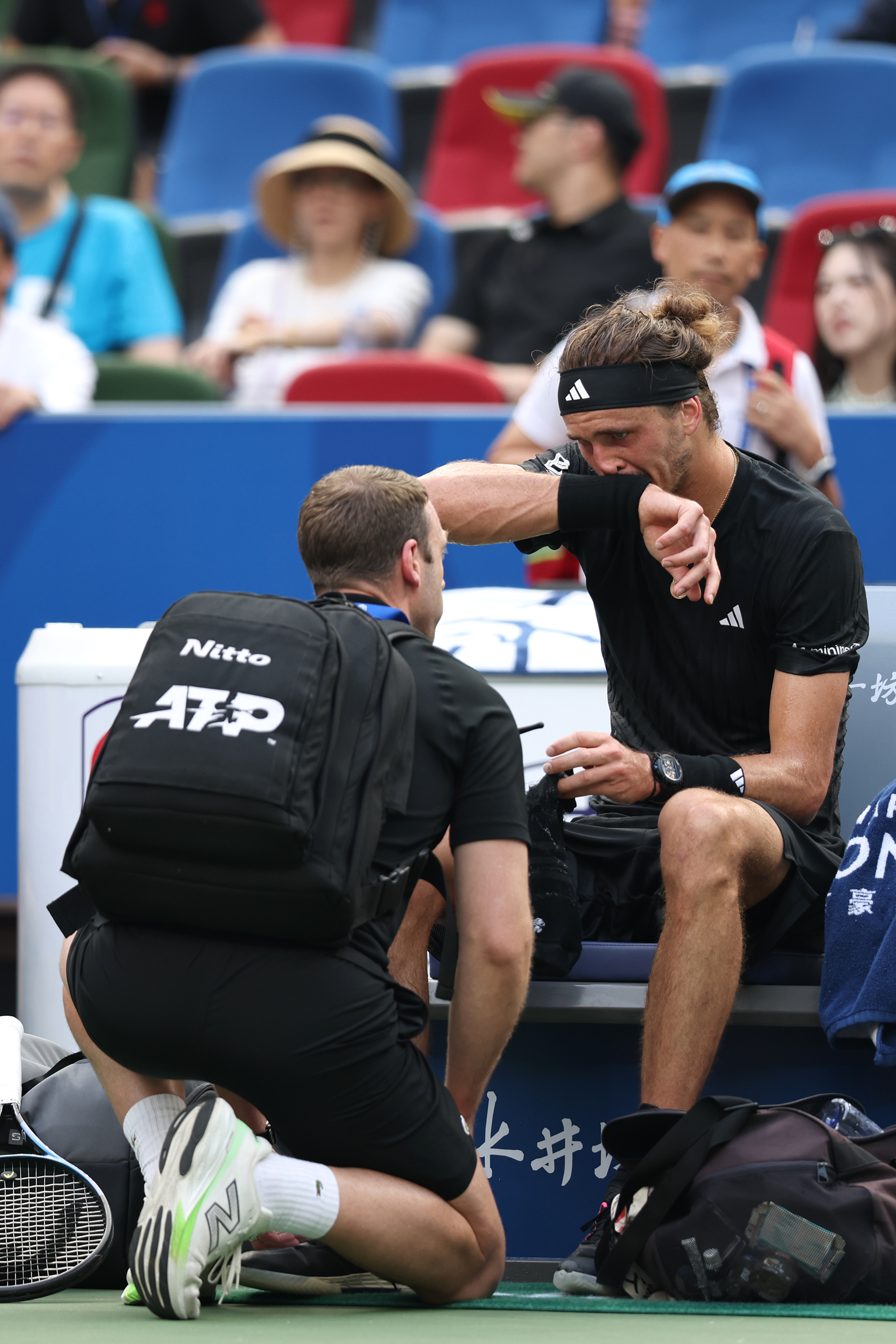 Alexander Zverev (GER) muss erneut zum Arzt. Der deutsche Tennisstar verletzte sich während seines 6:4, 6:4-Zweitrundensiege gegen den Franzosen Valentin Royer beim Masters in Shanghai am rechten großen Zeh.